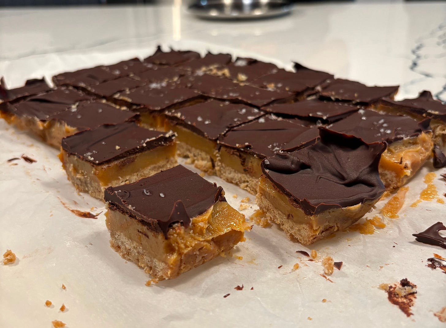 The same issue of insufficient salting comes up with baking, too. Most recipes for baked sweets have a pinch of salt in the ingredient list, but sometimes they don’t. Nagi’s recipe for caramel slice is almost perfect in every way except that there is no salt in it. I made it once following her ingredient list exactly and it was fine, but the next time I made it I added salt to the base and the filling (not much, only about ¼ or ½ teaspoon each) and it was even better.
